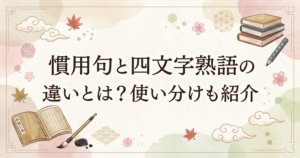 この記事では、慣用句と四文字熟語の違いを基本から整理し、代表的な例、ことわざとの違い、日常会話や作文で迷わないための使い分けまで丁寧にまとめます。言葉の選び方がはっきりすると、読む力も書く力もぐっと安定してきます。