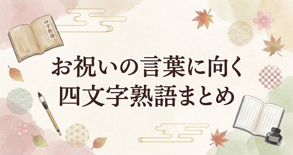 この記事では、お祝いの場で使いやすい四字熟語を場面別に整理しながら、意味の違いと使い分けのコツまでわかりやすくまとめました。気持ちにぴったり合う一語を見つけたいときの参考にしてください。